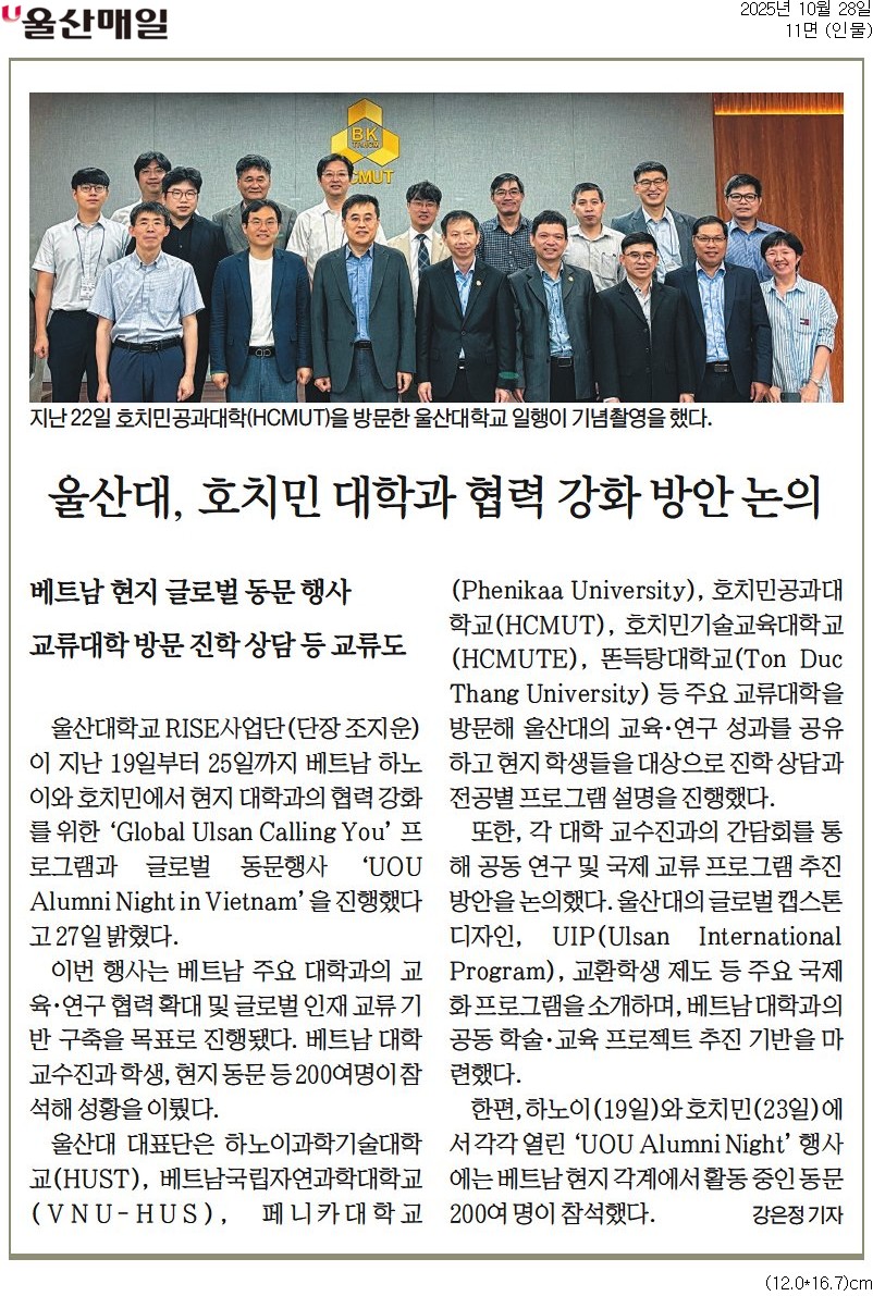 울산대, 호치민 대학과 협력 강화 방안 논의