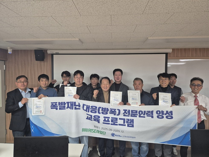 울산대학교 RISE사업단과 한국 방폭협회는 27일 ‘폭발재난 대응(방폭) 전문인력 양성교육’ 프로그램 수료식을 가졌다. 이번 프로그램은 울산대학교에서 지난 9월부터 11월까지 3차례 초급ㆍ중급ㆍ고급과정으로 실시됐다.