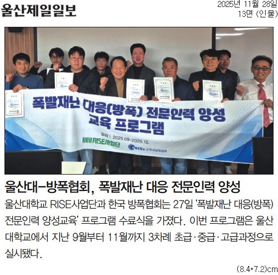 | 울산대-방폭협회, 폭발재난 대응 전문인력 양성 | |||||
