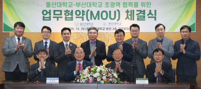 울산대학교(총장 오연천)는 29일 교내 교무회의실에서 부산대학교(총장 최재원)와 정부 추진 사업에 대한 초광역 협력을 강화하기 위한 업무협약(MOU)을 체결했다.